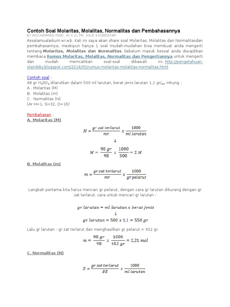 Konsentrasi Larutan Molaritas Molalitas Fraksi Mol Berat Normalitas Tekanan Osmotik Matematika Belajar