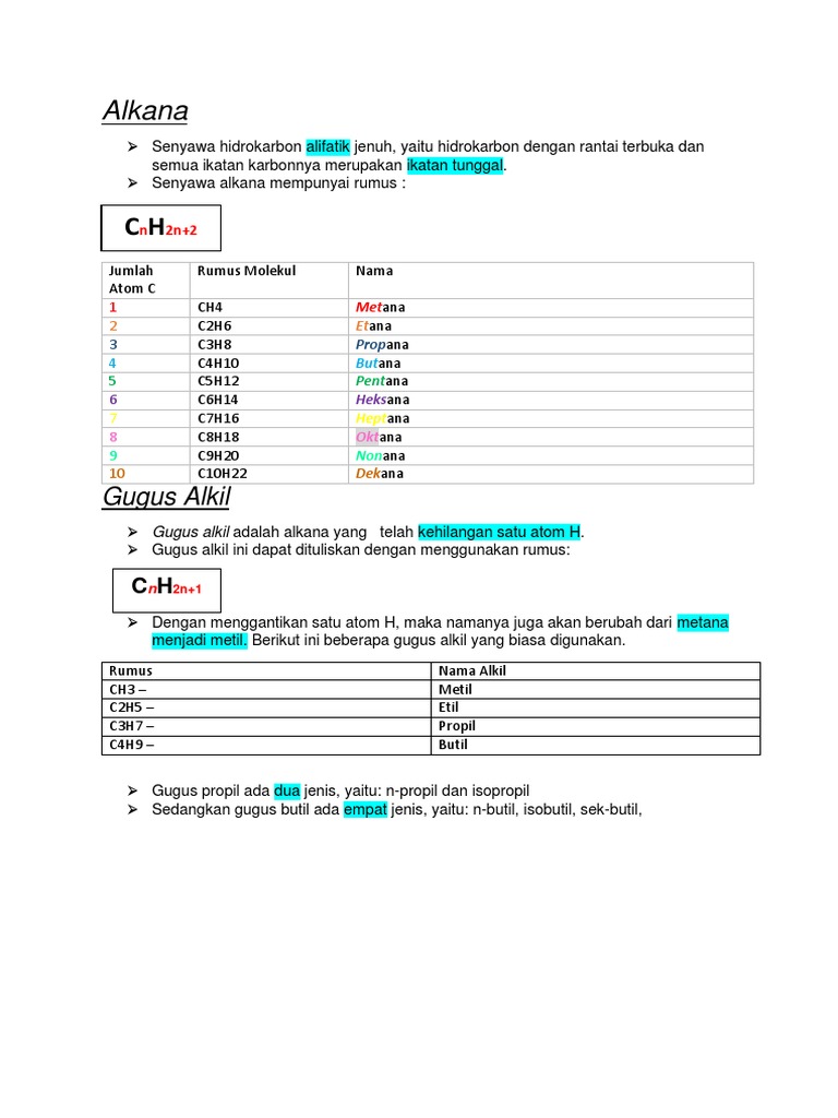 Aturan Penamaan Atau Tata Nama Dan Rumus Struktur Molekul Senyawa Turunan Alkana Seperti Metana Etana Propana Butana Pentana Heksana Heptana Oktana Nonana Dekana Materiedukasi Com