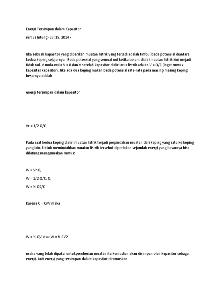 Rumus Kapasitas Kapasitor