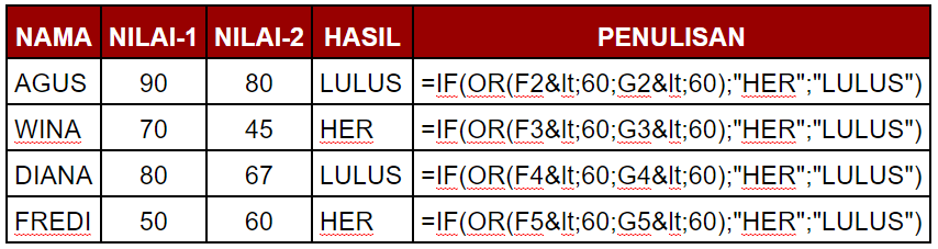 Rumus Fungsi Or Pada Excel Dan Contohnya Advernesia