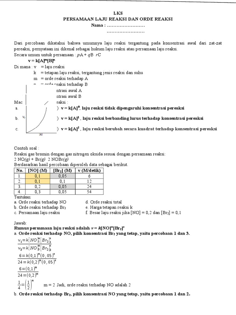 A Tentukan Orde Reaksi Terhadap Masing Masing Pereaksib Tentukan Rumus Laju Reaksinyac Hitung Nilai Brainly Co Id
