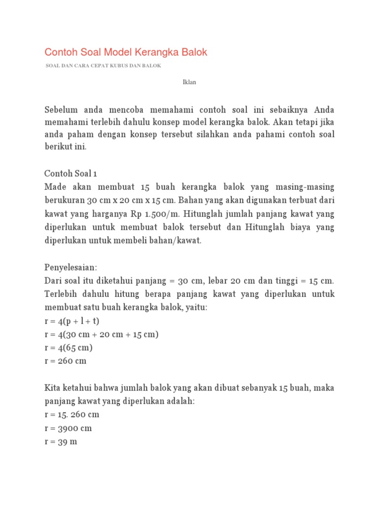 Matematika Model Kerangka Dan Jaring Jaring Kubus Dan Balok A Linggau Pos Online