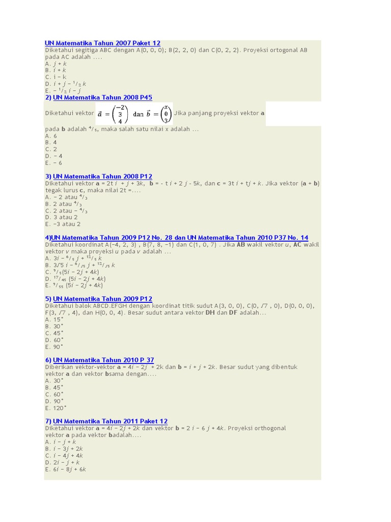 B Proyeksi Vektor B Pada A C Panjang Proyeksi Vektor A Pada D Panjang Proyeksi Vektor B Pada Pdf Document