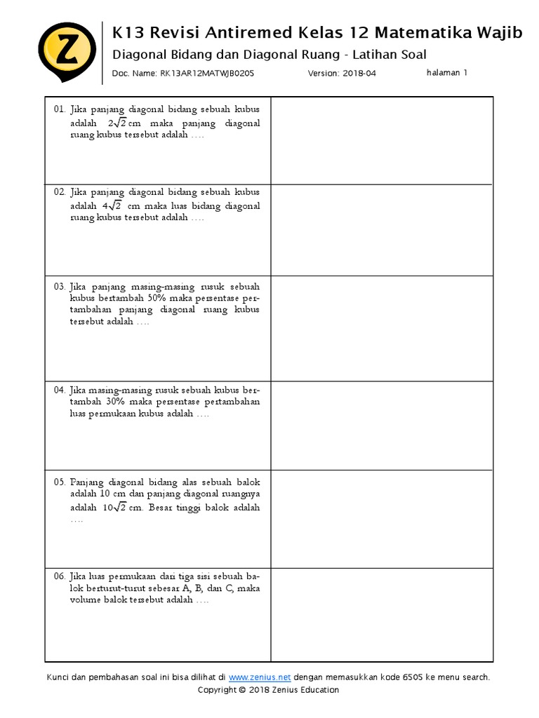 1 Luas Bidang Diagonal Sebuah Kubus Adalah 8 2 Cm Panjang Rusuknya Adalah 2 Jika Luas Bidang Brainly Co Id