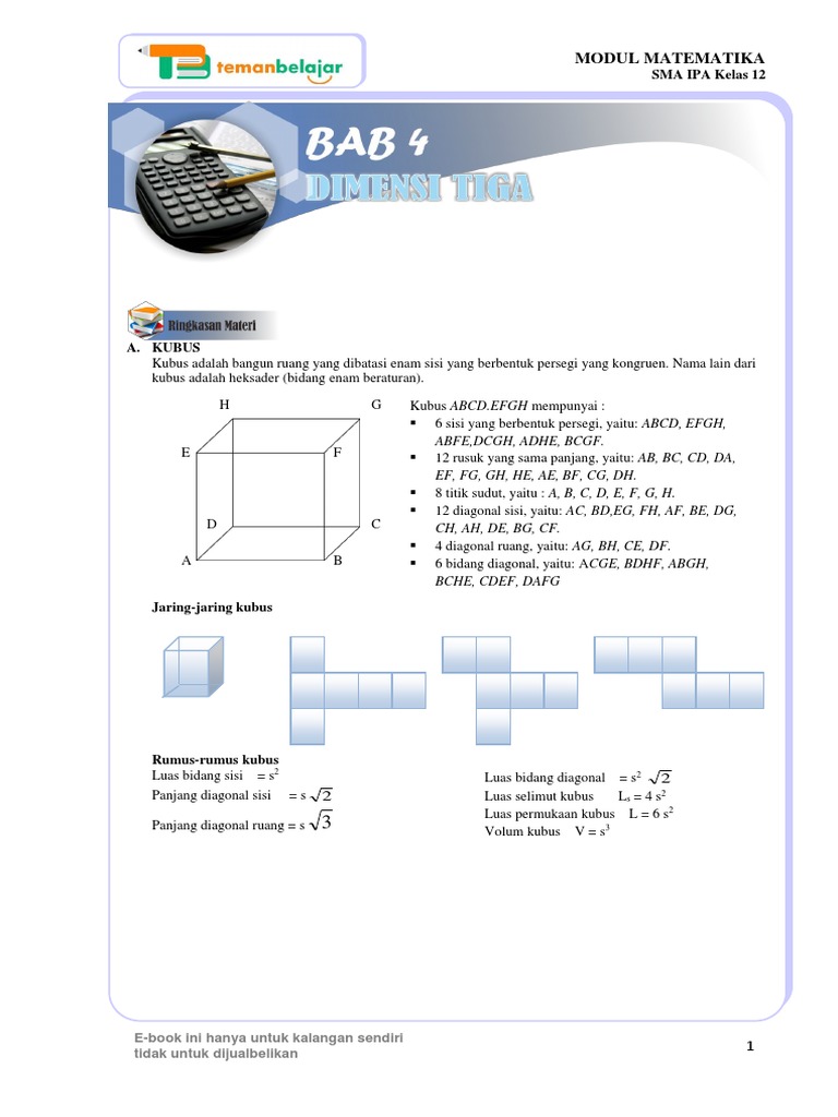 1 Panjang Rusuk Sebuah Kubus Adalah 10cm Hitunglah A Panjang Diagonal Bidang B Panjang Diagonal Brainly Co Id