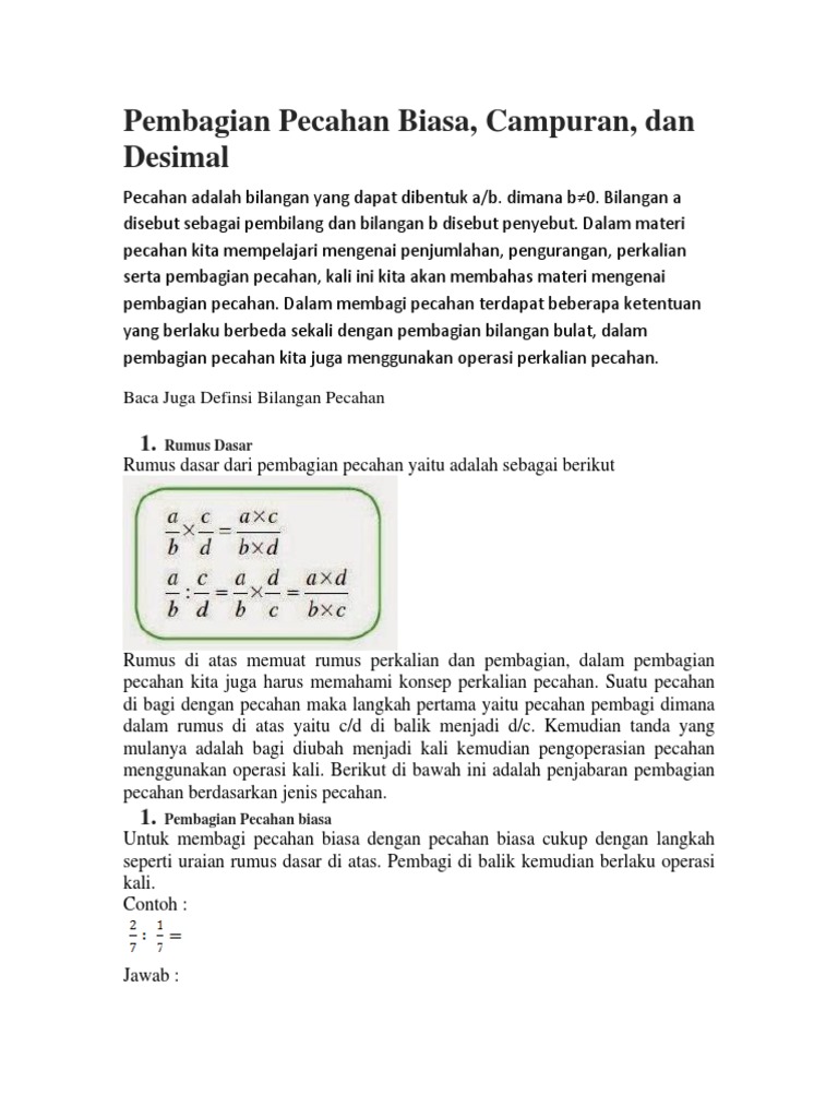 Cara Menghitung Operasi Perkalian Dan Pembagian Pada Bilangan Pecahan Beserta Contohnya Berpendidikan Com