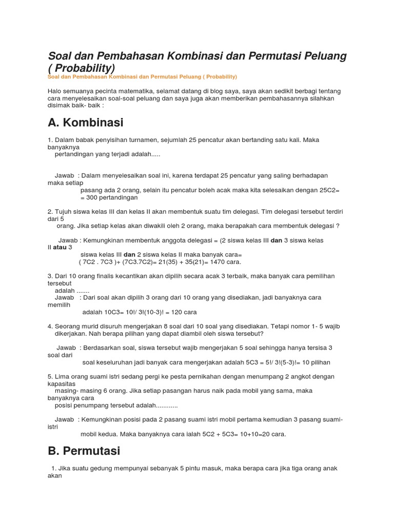 Rumus Contoh Soal Permutasi Dan Kombinasi Pengertian Unsur Yang Sama Siklis Cara Menentukan Binomial Newton Peluang Jawaban Matematika