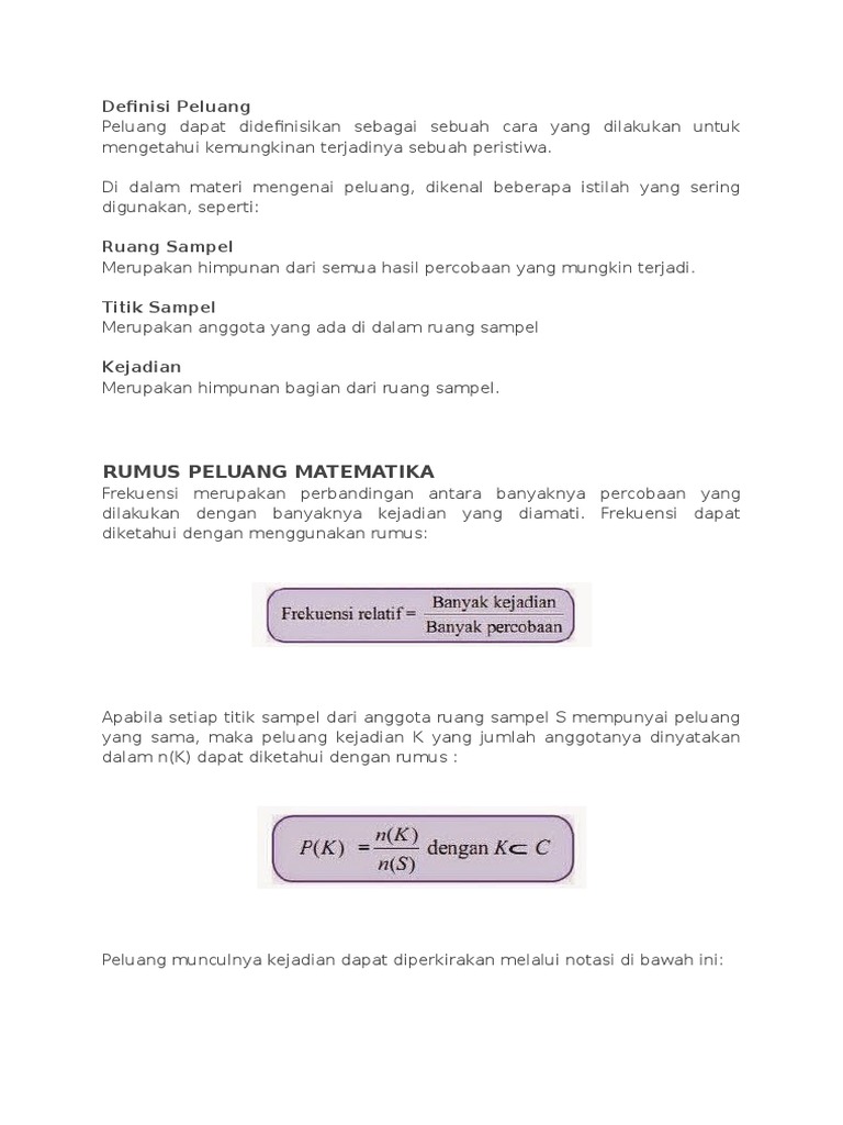 Rumus Peluang Statistika Matematika Contoh Soal Pengertian Materi Peluang Suatu Kejadian Sederhana Frekuensi Harapan Ruang Sampel Jawaban Teori Definisi