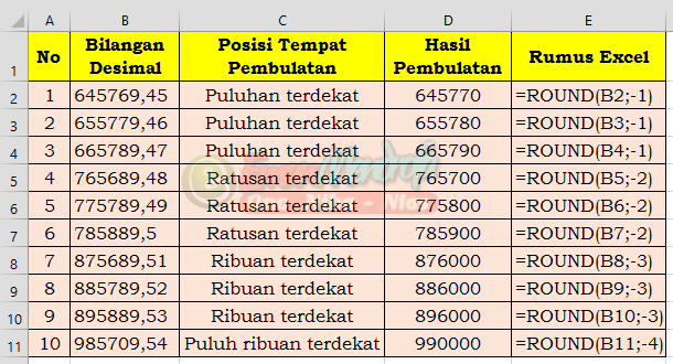 Cara Pembulatan Angka Di Excel Dengan Penjelasan Dan Contoh Terlengkap Pelajaran Sekolah Online
