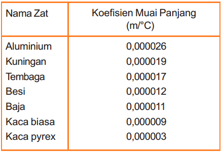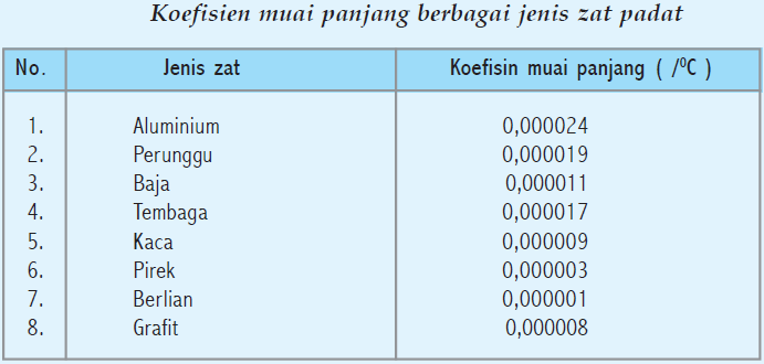 Tabel Koefisien Dan Contoh Soal Untuk Pemuaian Panjang Pemuaian Luas Serta Pemuaian Volume Pada Zat Padat Cair Dan Gas Materiedukasi Com