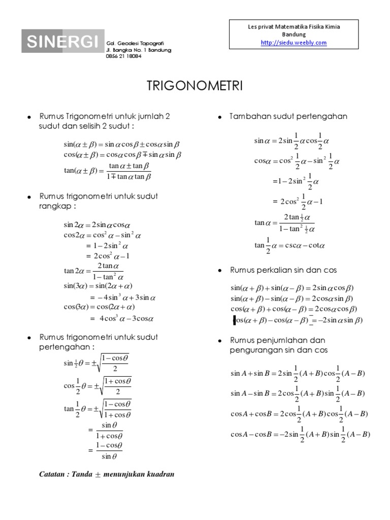 Rumus Penjumlahan Dan Pengurangan Trigonometri Dan Pola Soal Kurikulum 13