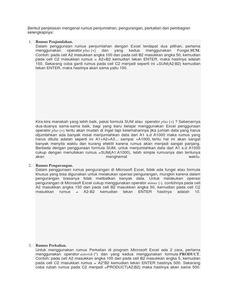 Rumus Perkalian Pembagian Penjumlahan Dan Pengurangan Di Office Excel Lengkap Info Menarik