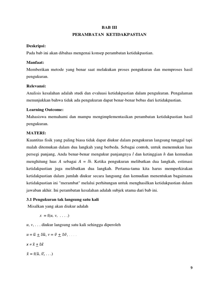 Ketidakpastian Dan Pengukuran Praktikum Fisika 2 Dengan Pengertian Ini Maka Dalam Mengukur Tegangan Sebuah Alat Ukur Dikatakan Presisi Precision Pdf Document