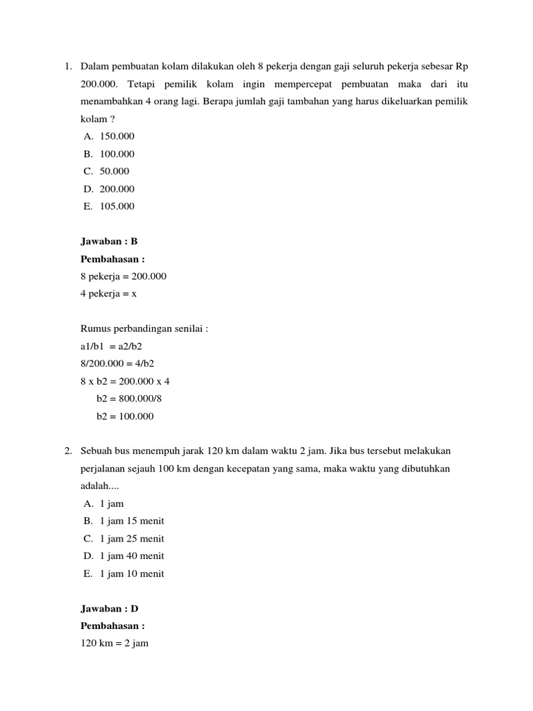 Contoh Soal Perbandingan Senilai Dan Perbandingan Tidak Senilai Blognya Mas Adi