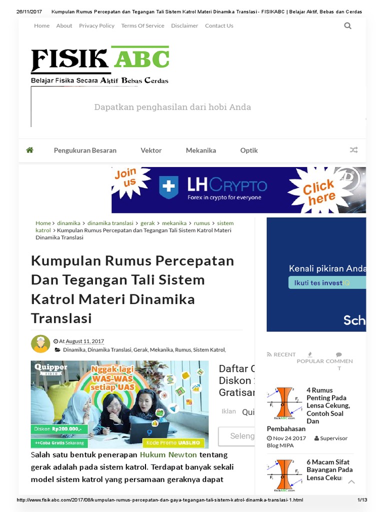 Kumpulan Rumus Percepatan Dan Tegangan Tali Sistem Katrol Materi Dinamika Translasi 2 Fisikabc