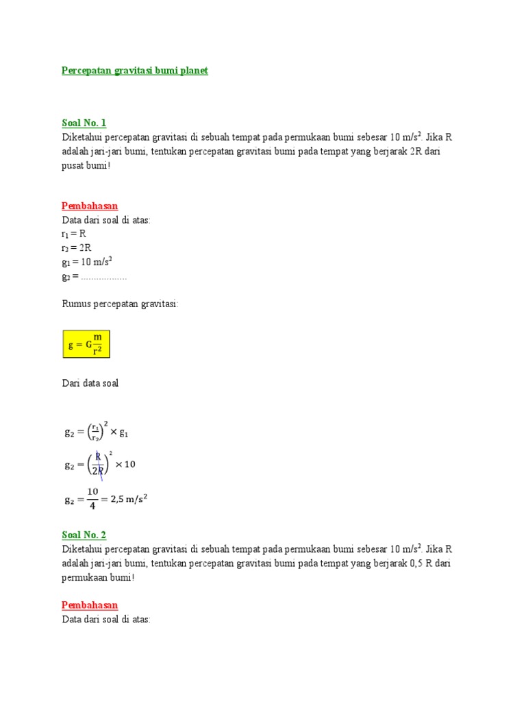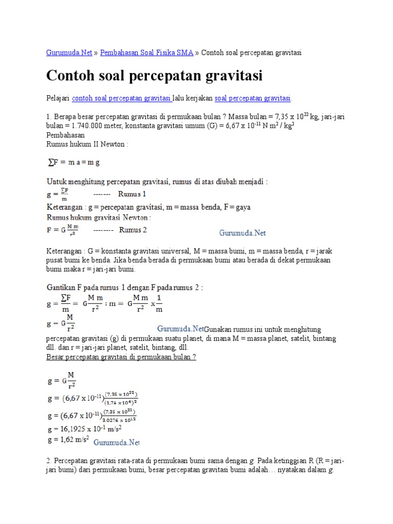 Contoh soal dan pembahasan percepatan gravitasi. Percepatan gravitasi bumi g 2 r 1 r 2 2 x g 1. Untuk percepatan sendiri terbagi menjadi 2 jenis yaitu percepatan rata rata dan percepatan sesaat nanti kita akan bahas kedua percepatan ini dibagian akhir materi.