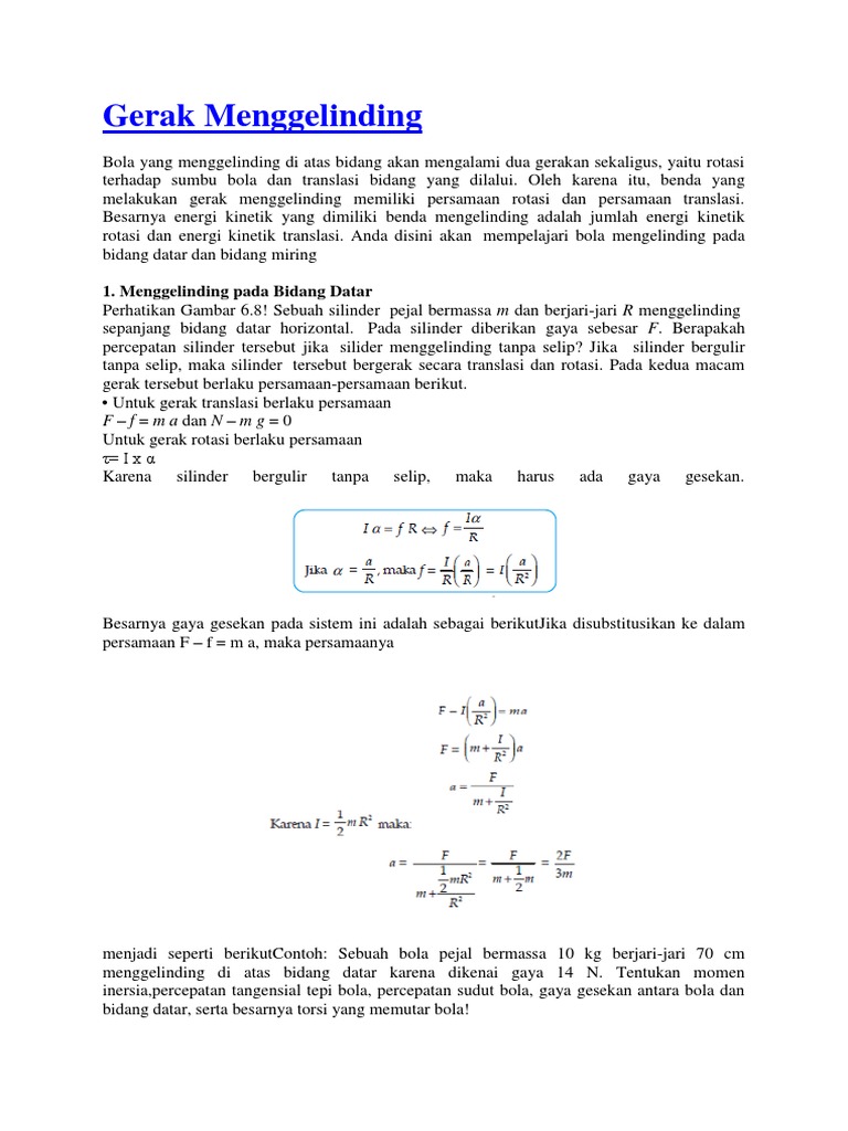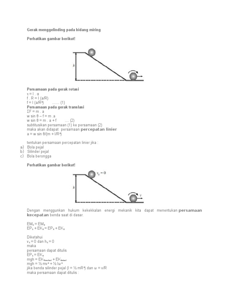 Silinder Pejal Berjari Jari R Bermassa M Dilepas Dari Puncak Bidang Miring Yang Tingginya H Dan Brainly Co Id