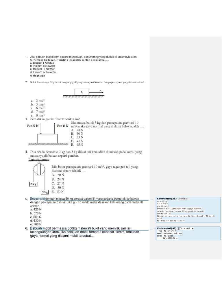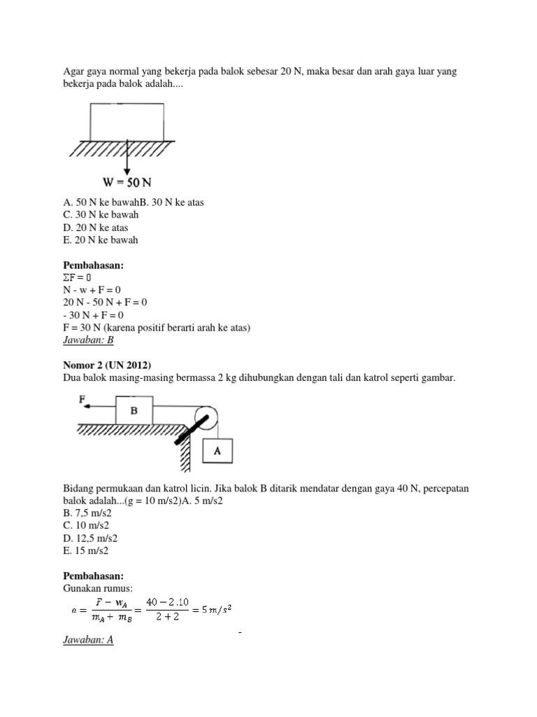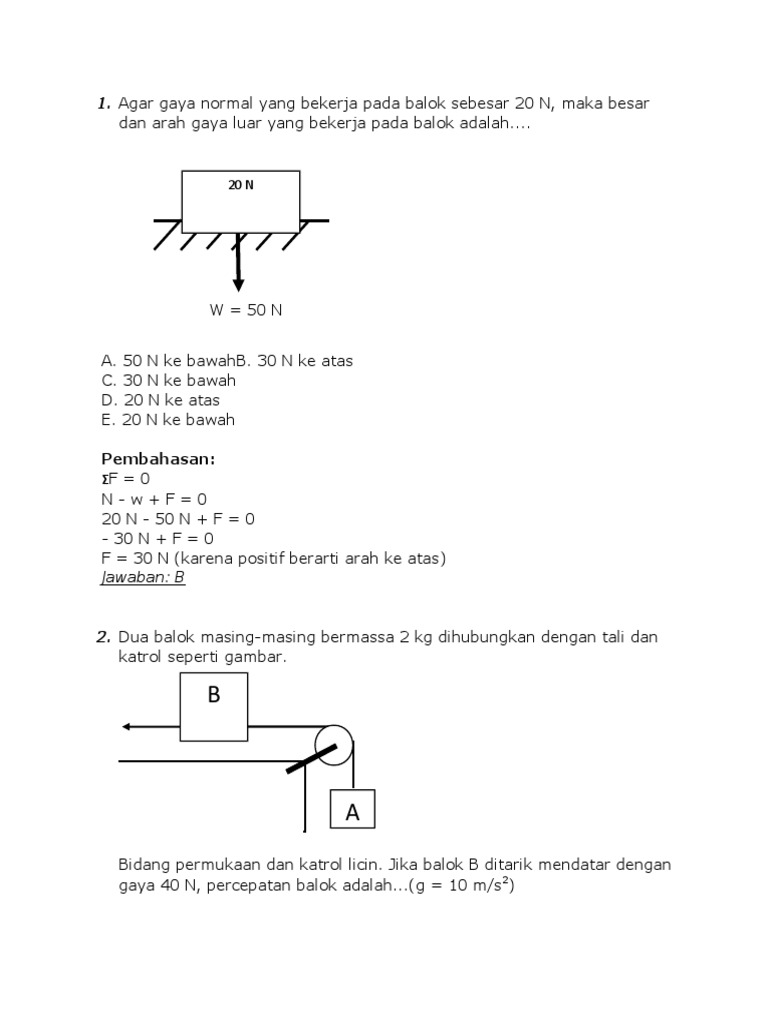 Dinamika Partikel Docx Contoh Soal Hukum I Newton Balok Bermassa 20 Kg Berada Di Atas Bidang Miring Licin Dengan Sudut Kemiringan 30 Jika Ucok Ingin Course Hero