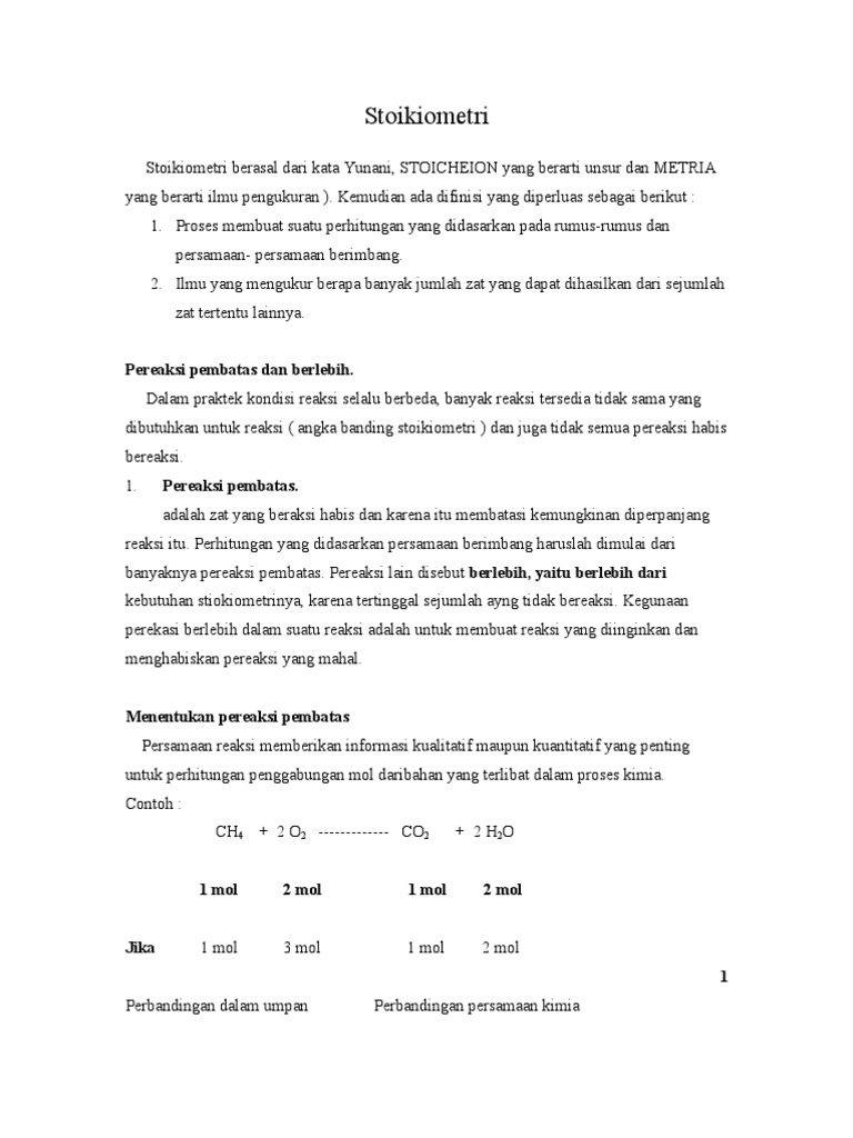 Laporan Praktikum Kimia Dasar Stoikiometri Laporan Praktikum Teknik Kimia