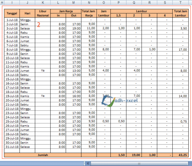 Menghitung Lembur Ketetapan Lembur Dan Contoh Penghitungan Dalam Microsoft Excel Adhe Pradiptha