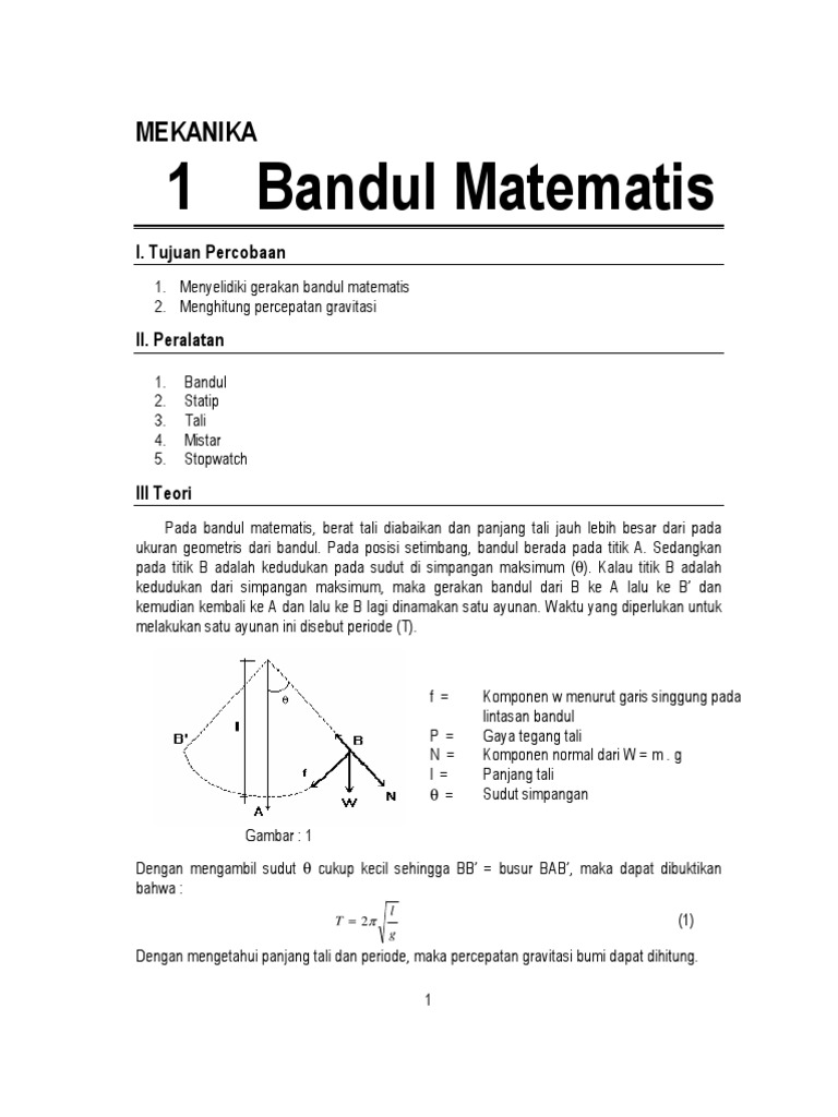 Sebuah Bandul Sederhana Terdiri Dari Tali Yang Mempunyai Panjang 40 Cm Dan Pada Ujung Bawah Tali Digantungi Beban Bermassa 100 Gram