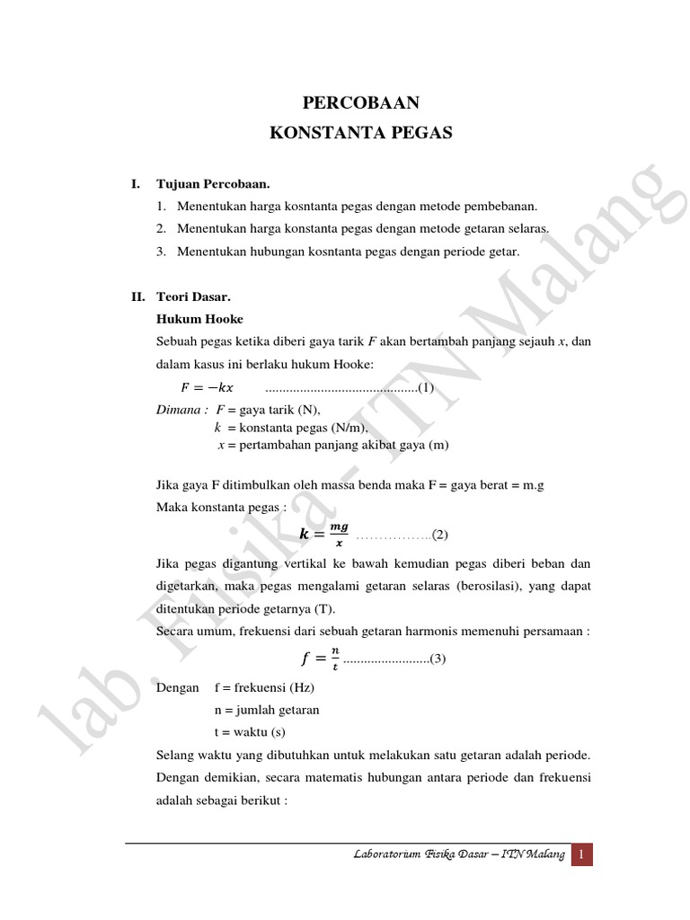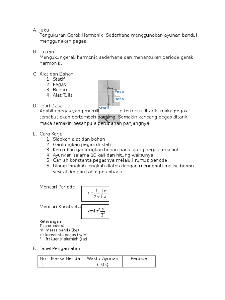 D Gaya Pegas F Rumus Praktis Hubungan Energi Dengan Dengan F Frekuensi Hz T Periode Detik Maka Frekwensi Getaran Sistem Pegas Adalah Pdf Document