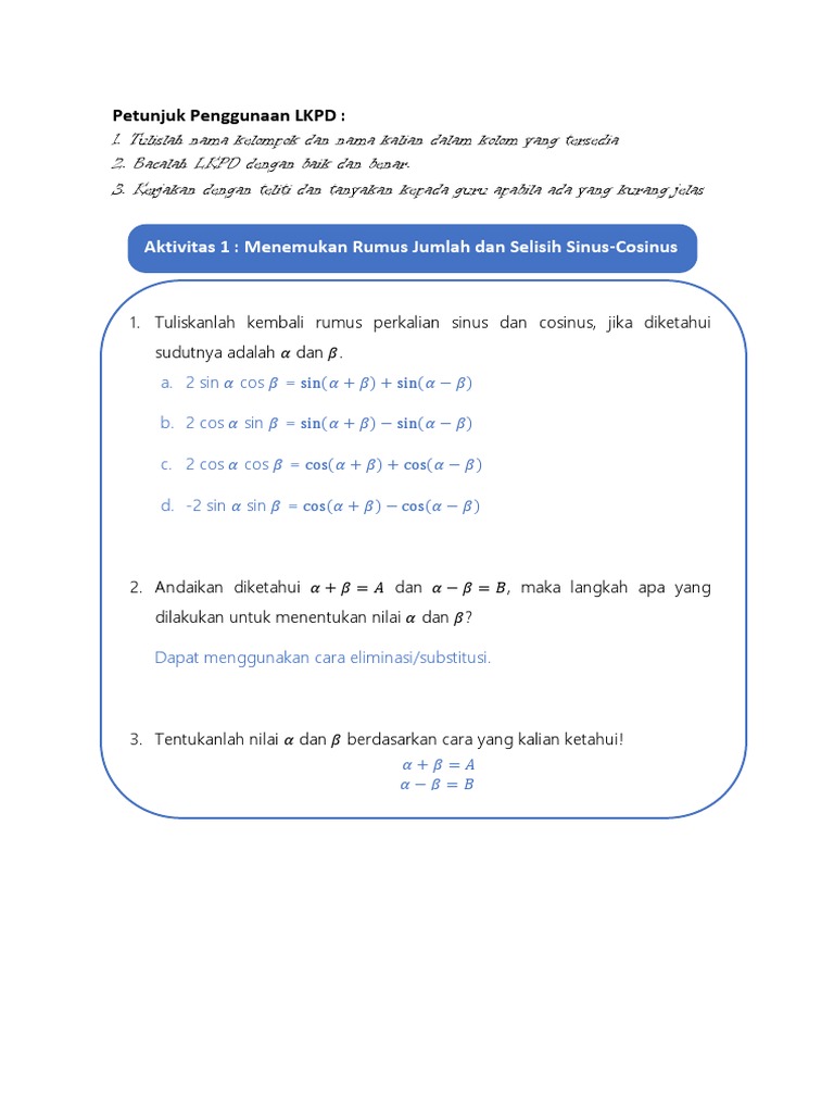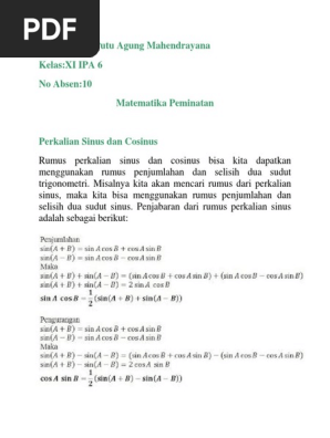 Hasil Penelusuran Untuk Rumus Perkalian Sinus Dan Cosinus