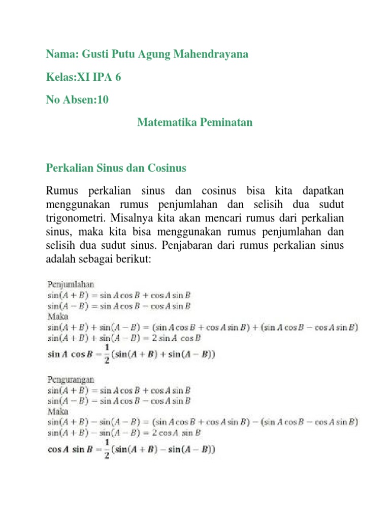 Rumus Perkalian Sinus Dan Cosinus Penjumlahan Pengurangan Contoh Soal Jawaban Jumlah Selisih Trigonometri Matematika