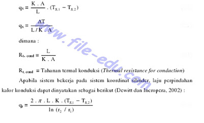 Laju perpidahan kalor secara koduksi dirumuskan sebagai perkalian antara konduktivitas kalor k dengan luas penampang adan selisih suhu kedua titik t2 t1 dibagi dengan jarak kedua titik xrumus laju perpindahan kalor nya. Karena proses perpindahan kalor yang terjadi tanpa disertai dengan perpindahan materi kaca maka kita gunakan rumus perpindahan kalor secara konduksi. Perpindahan kalor secara konduksi hantaran adalah perpindahan kalor melalui zat perantara dimana partikel partikel zat perantara tersebut tidak berpindah.