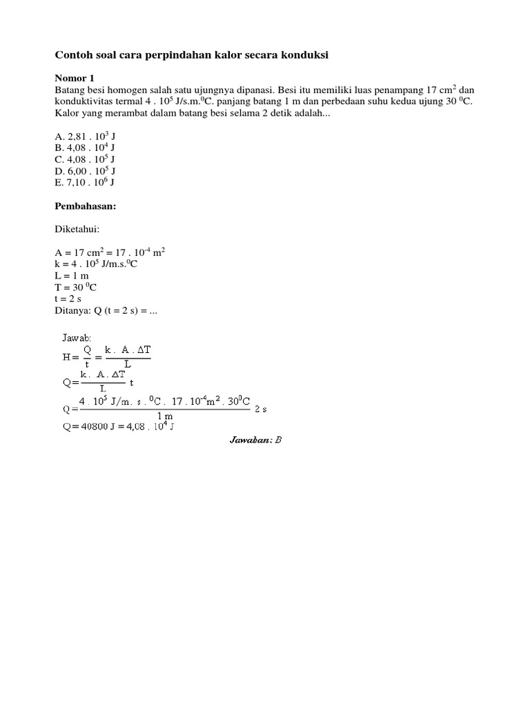Rumus perpindahan kalor secara konduksi. Pada kehidupan sehari hari kalian akan dapat menjumpai peralatan rumah tangga yang prinsip kerjanya yaitu dengan memanfaatkan perpindahan kalor secara konduksi. Rumus dan contoh soal perpindahan kalor secara konduksi sponsors link konduksi dalah perpindahan kalor melalui perantara berupa zat padat dimana perpindahan kalor pada zat padat tersebut tidak disertai dengan perpindahan partikel partikelnya. Jadi laju perpindahan kalor melalui kaca jika konduktivitas termal kaca 08 wmk adalah 576.