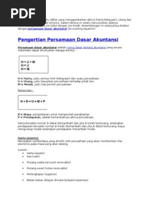 Contoh Soal Persamaan Dasar Akuntansi Diminta Buatlah Persamaan Dasar Akuntansi Dari Transaksi Transaksi Diatas Jawab Pdf Download Gratis