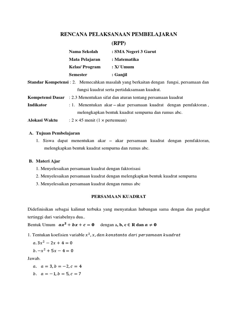 Persamaan Kuadrat Pengertian Rumus Contoh Soal Pembahasan
