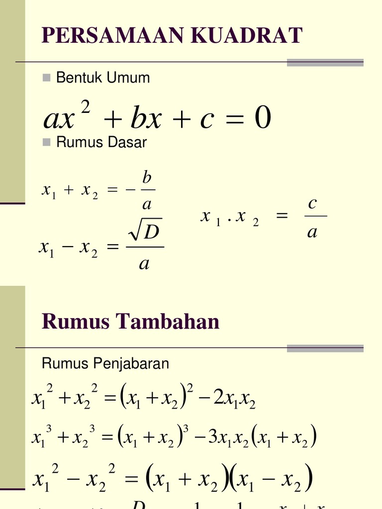 Rumus Persamaan Kuadrat Penyelesaian Akar Dan Contoh Soal