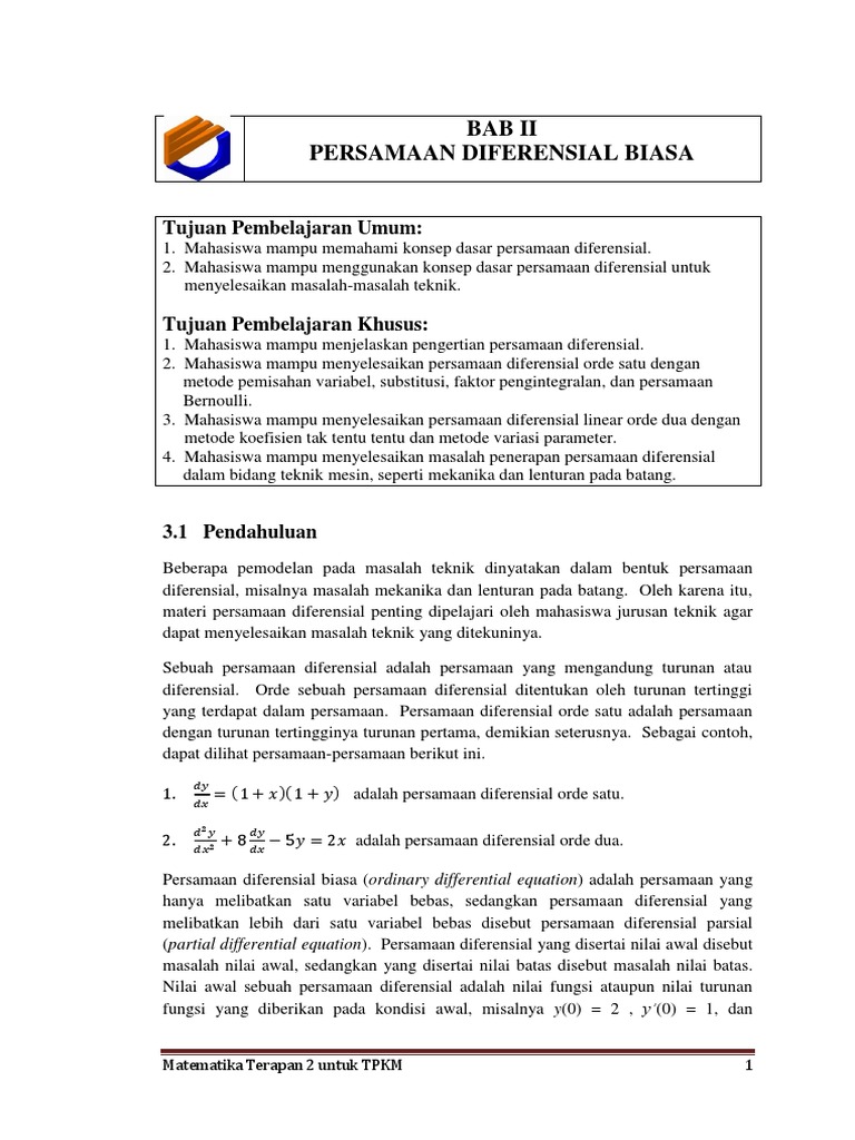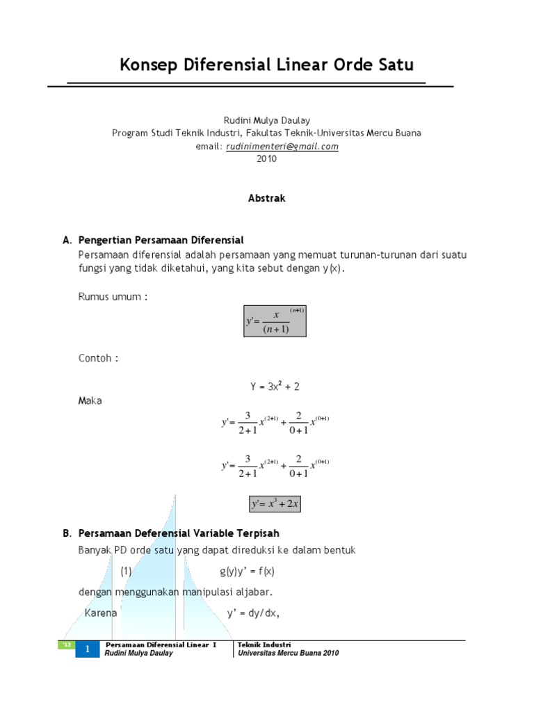 Turunan Integral Persamaan Diferensial Sederhana Persamaan Diferensial Orde Pertama Contoh Soal Cerita Iv Persamaan Diferensial Linear Orde 1 Aplikasi Persamaan Diferensial Pdf Document