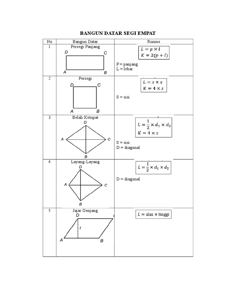 Rumus Bangun Datar Dan Contoh Soal Pembahasan Lengkap
