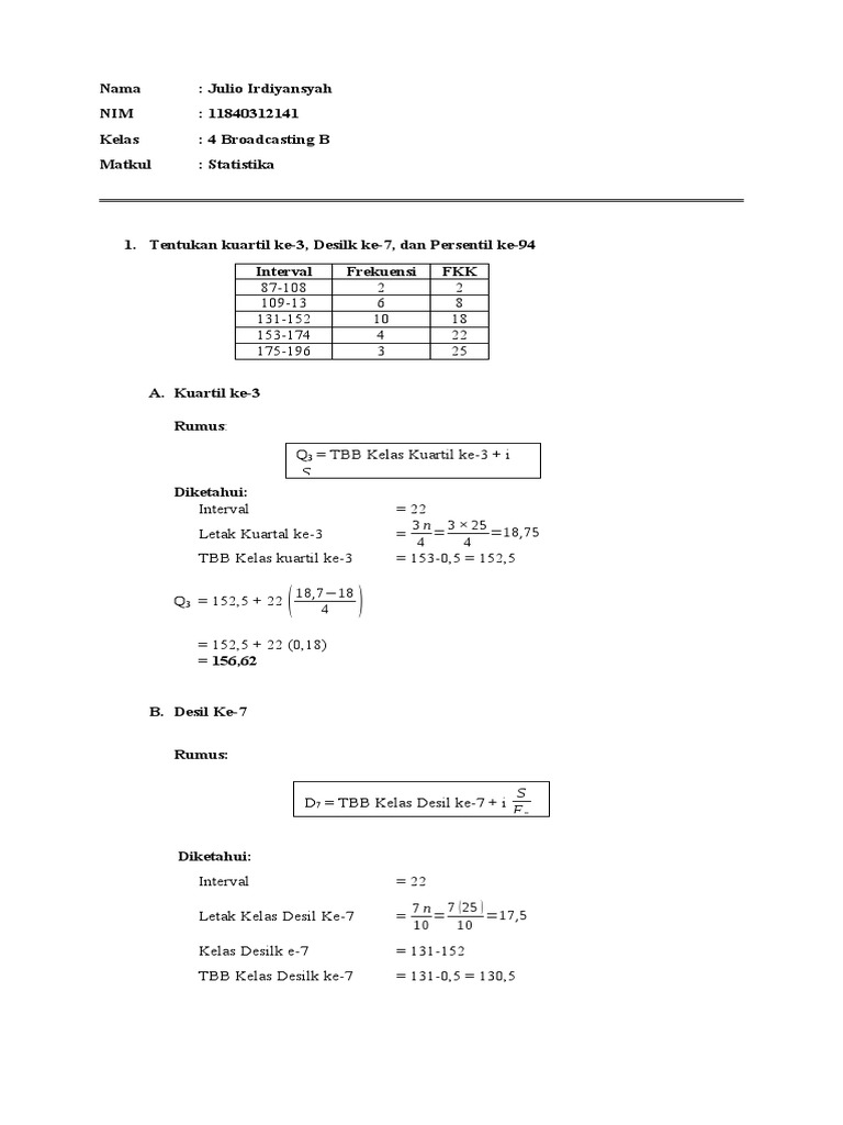 Rumus Kuartil Desil Dan Persentil Contoh Soal Dan Jawaban