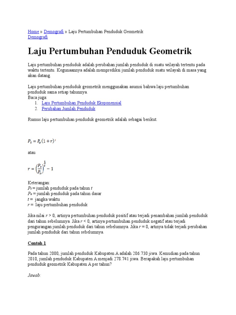 Pertumbuhan Penduduk Alami Sosial Geometri Dan Eksponensial Geografisku
