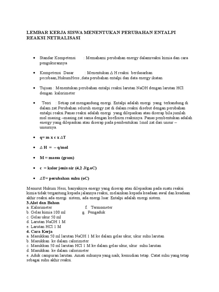 Laporan Praktikum Perubahan Entalpi Docx Laporan Praktikum Perubahan Entalpi I Judul Menentukan U2206h Reaksi Netralisasi Ii Tujuan Untuk Menentukan Course Hero