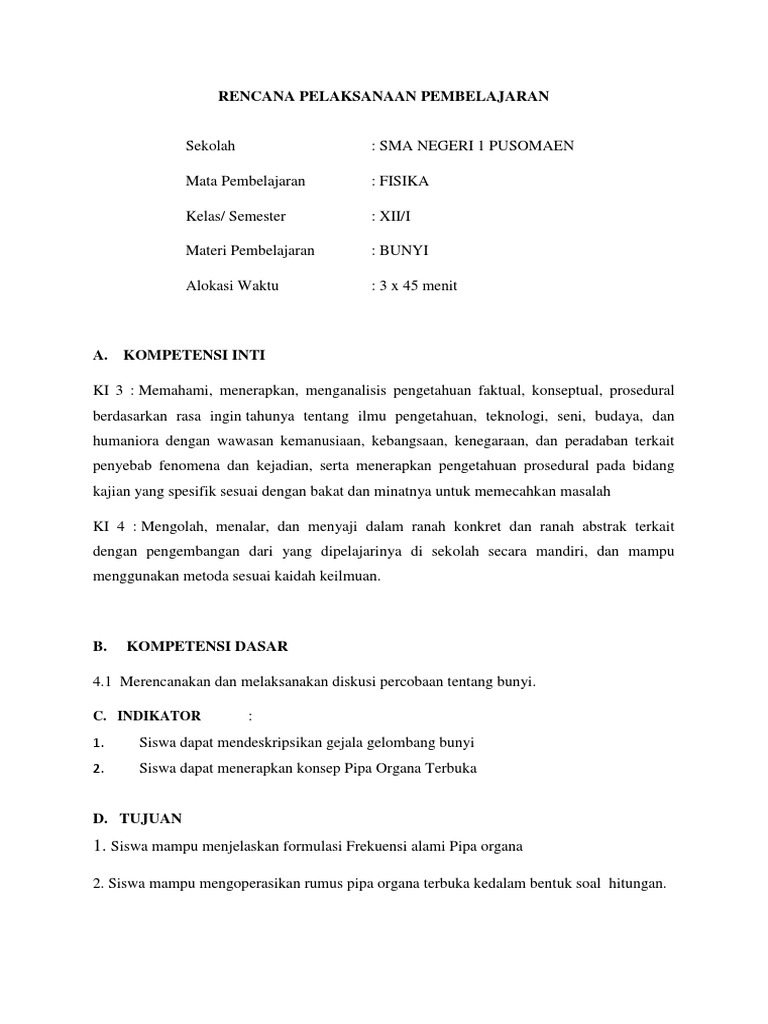 Jika udara dihembuskan kuat kuat melalui lobang a dan diarahkan ke celah c sehingga menyebabkan bibir b bergetar maka udarapun bergetar. Rumus frekuensi pada pipa organa terbuka. Kenyataan ini digunakan pada alat musik yang dinamakan organa baik organa dengan pipa tertutup maupun pipa terbuka.