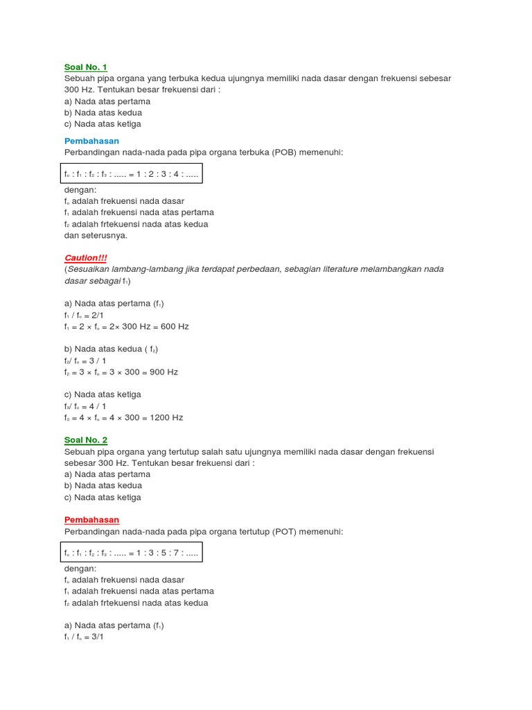 Rumus nada dasar nada atas pertama nada atas kedua dan nada atas yang lainnya untuk pipa organa tertutup. Rumus frekuensi pada pipa organa tertutup. Pipa organa terbuka pipa organa tertutup dan dawai atau senar akan dibahas pada artikel berikut ini.