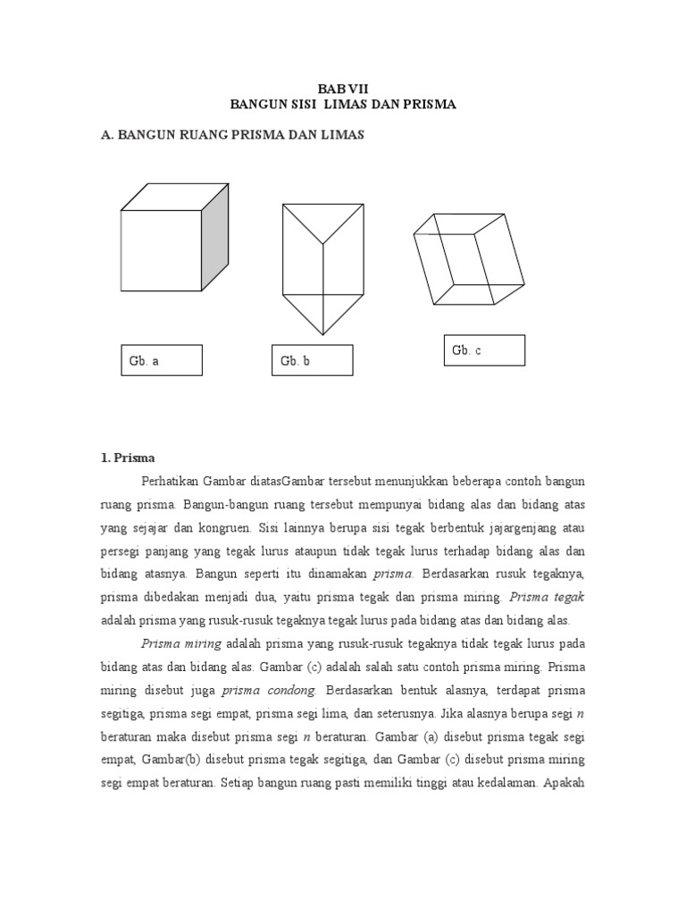 Bangun Ruang Sisi Datar Limas Dan Prisma Bab 10 Pdf224 Matematika Konsep Dan Aplikasinya 2 T Tinggi T Tinggi Pada Bab Sebelumnya Kalian Telah Mempelajari Bangun Ruang Kubus Dan Pdf Document