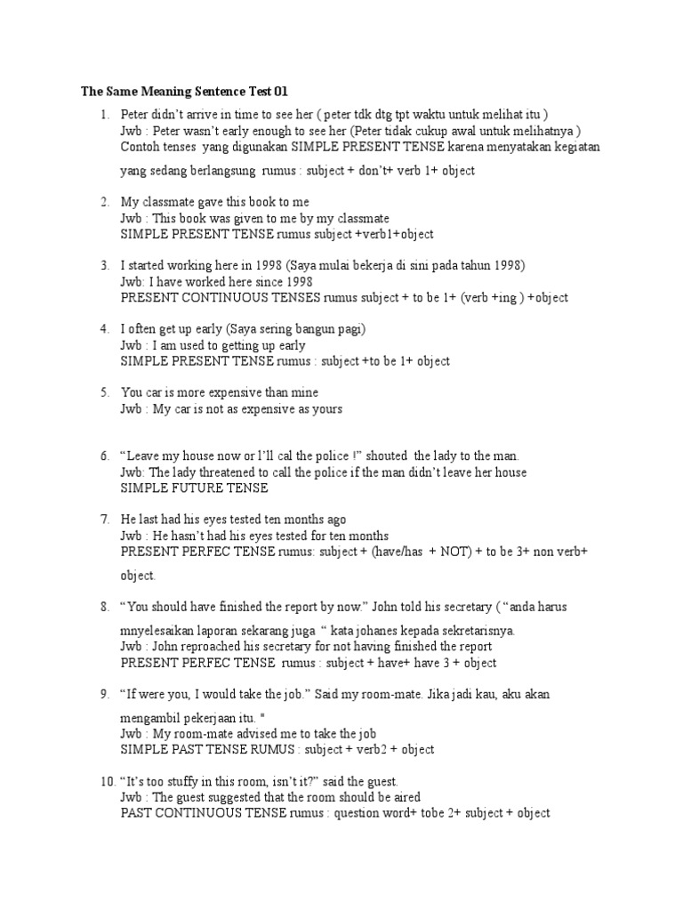 Contoh Soal Simple Present Tense Lengkap Dengan Jawaban Untuk Kelas 7 Smp Belajar Bahasa Inggris Online Gratis