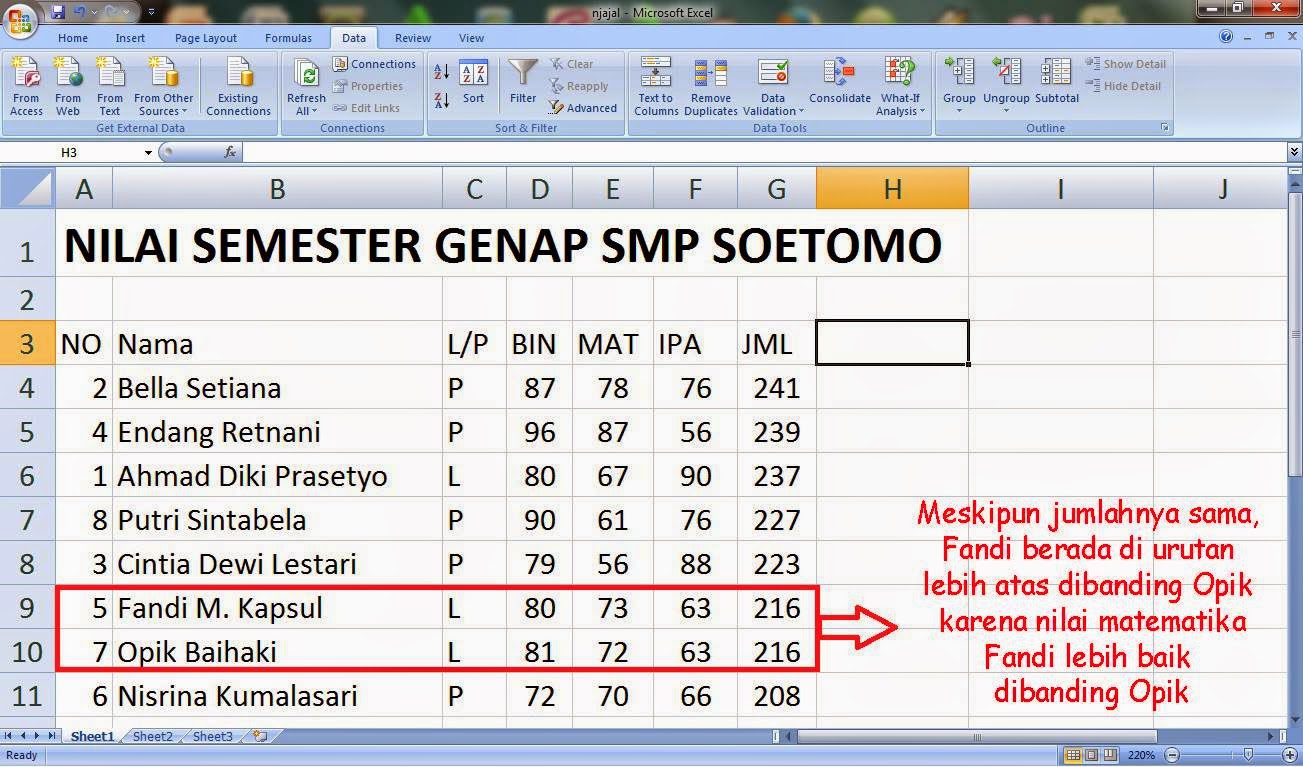 Cara Membuat Ranking Menggunakan Rumus Office Excel 2007 2010 2013 Info Menarik