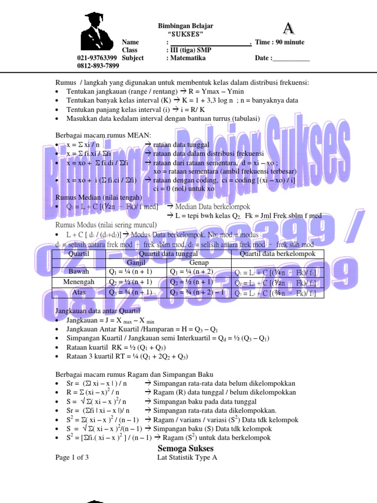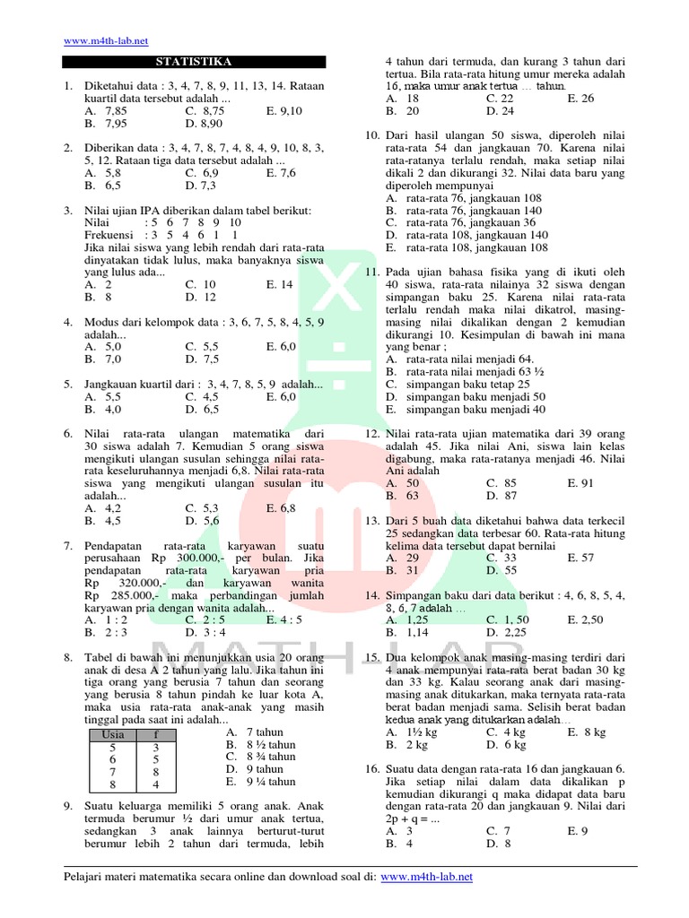 Pengertian Contoh Soal Mean Median Modus Kuartil Dan Desil Rumus Cara Menghitung Rataan Hitung Sementara Data Ukuran Statistik Deskriptif Jawaban Matematika