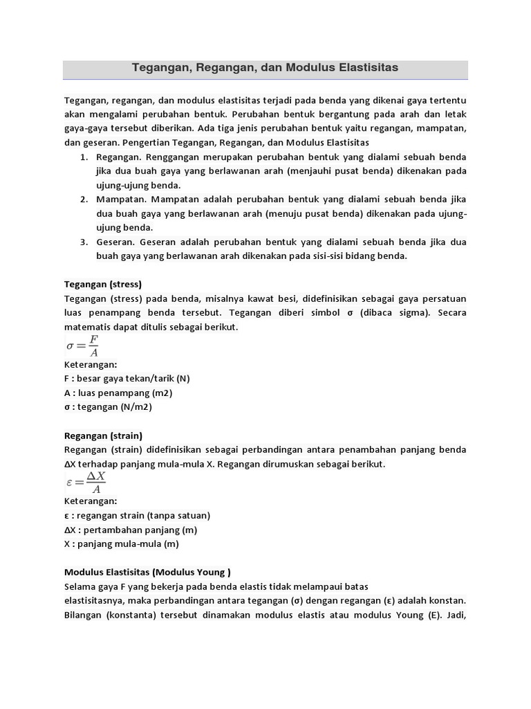 Cara Menghitung Tegangan Regangan Dan Modulus Young Suatu Benda Myrightspot Com