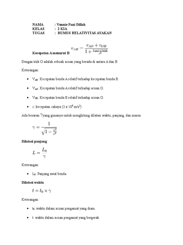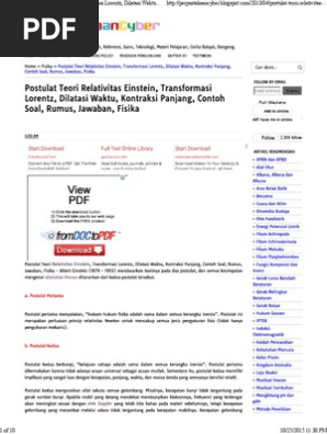 Postulat Teori Relativitas Einstein Transformasi Lorentz Dilatasi Waktu Kontraksi Panjang Contoh Soal Rumus Jawaban Fisika Perpustakaan Cyber Pdf Document