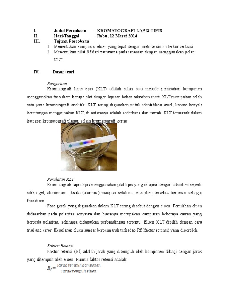 Tinjauan Pustaka 4 Docx I Tinjauan Pustaka Klt Adalah Suatu Metode Pemisahan Fisikokimia Dimana Fase Diam Terdiri Dari Butir Butir Pada Pengangan Course Hero