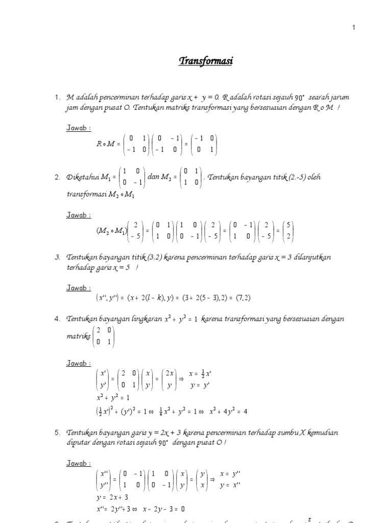 Besarnya rotasi dalam transformasi geometri sebesar a disepakati untuk arah yang berlawanan dengan arah jalan jarum jam. A bernilai jika arah putaran berlawanan dengan arah jarum jam a bernilai jika araha putaran searah dengan arah jarum jam. T1 adalah pencerminan terhadap sumbu x sehingga memiliki matriks.