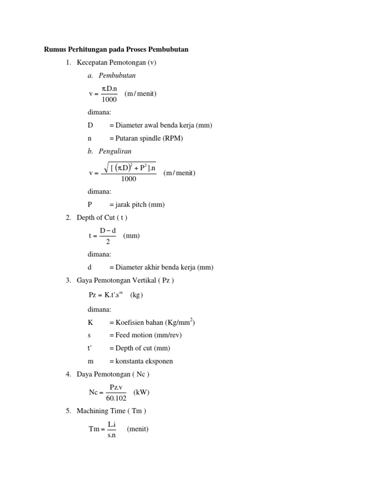 Rumus rumus mesin frais keywords. Sebuah benda kerja akan dilakukan pengeboran pada mesin frais sepanjang 38 mm denan mata bor berdiameter 12 mm. Maka dari itu untuk mencari besarnya putaran mesin sangat dipengaruhi oleh seberapa besar kecepatan potong dan keliling benda kerjanya.