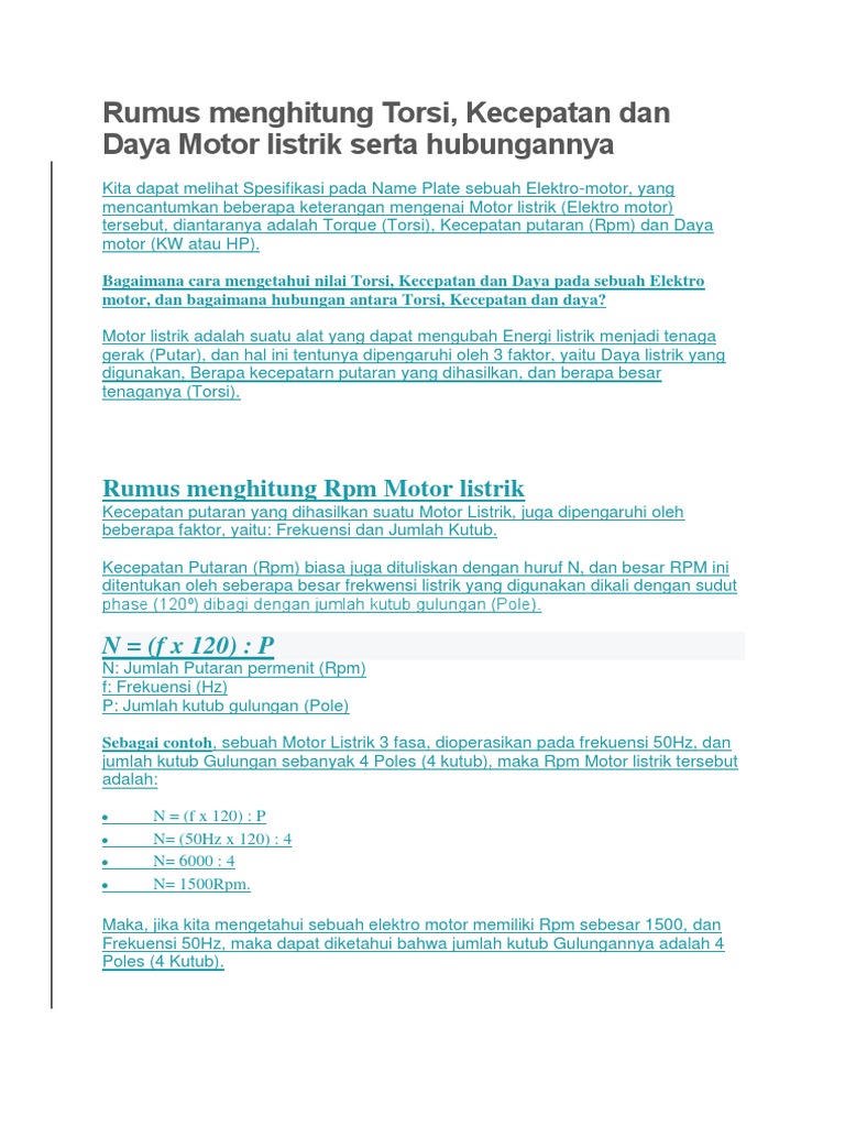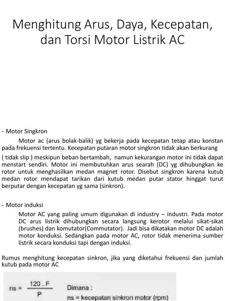 Menghitung Arus Daya Kecepatan Dan Torsi Motor Listrik Ac Desain Sistem Kontrol